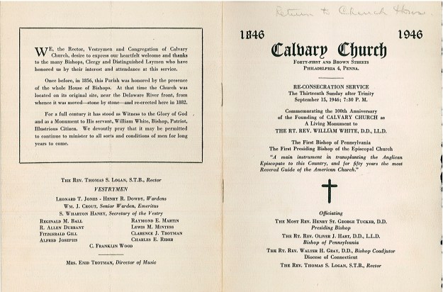 From the Archives of the Diocese of Pennsylvania. Click on the image to access the program