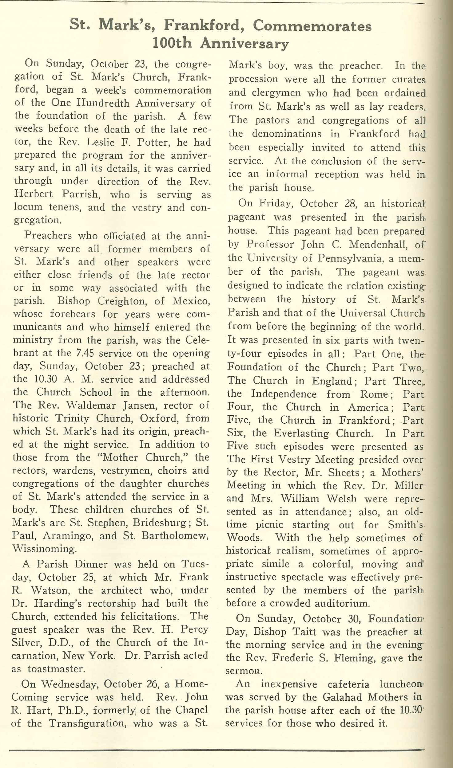 Seventy-Fifth Anniversary Program of the Memorial Church of St. Luke the Beloved Physician, Bustleton (1936)