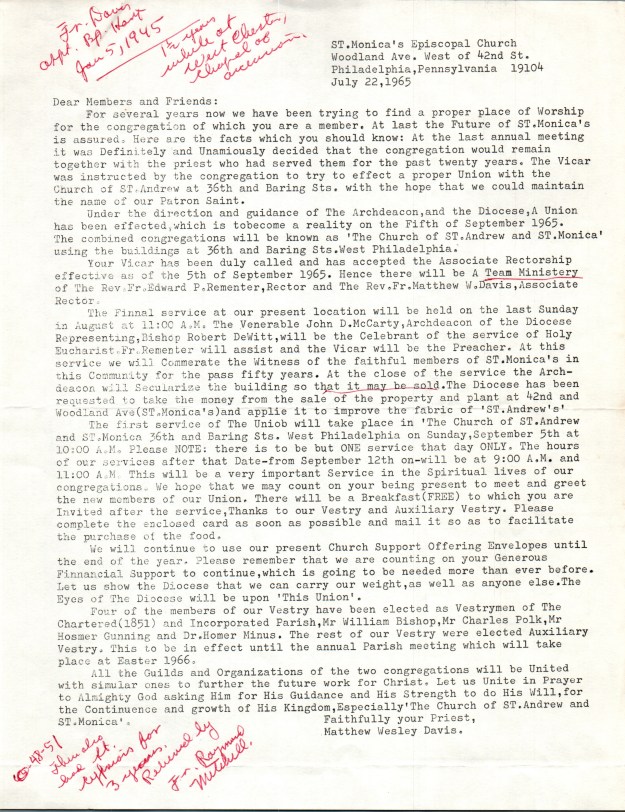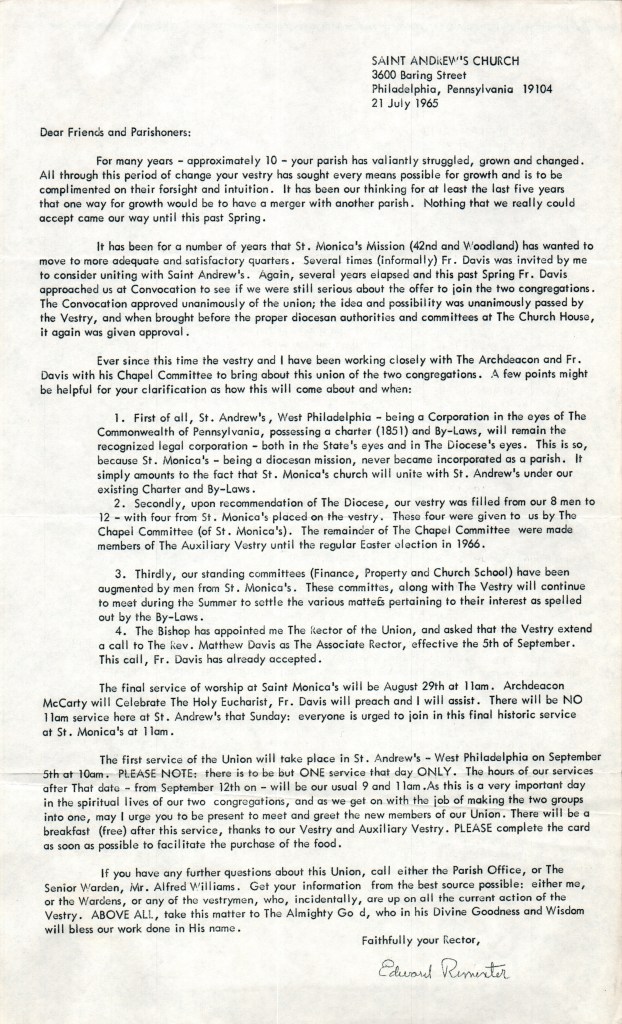 From the Archives of the Diocese of Pennsylvania. Click on the image to access the letters