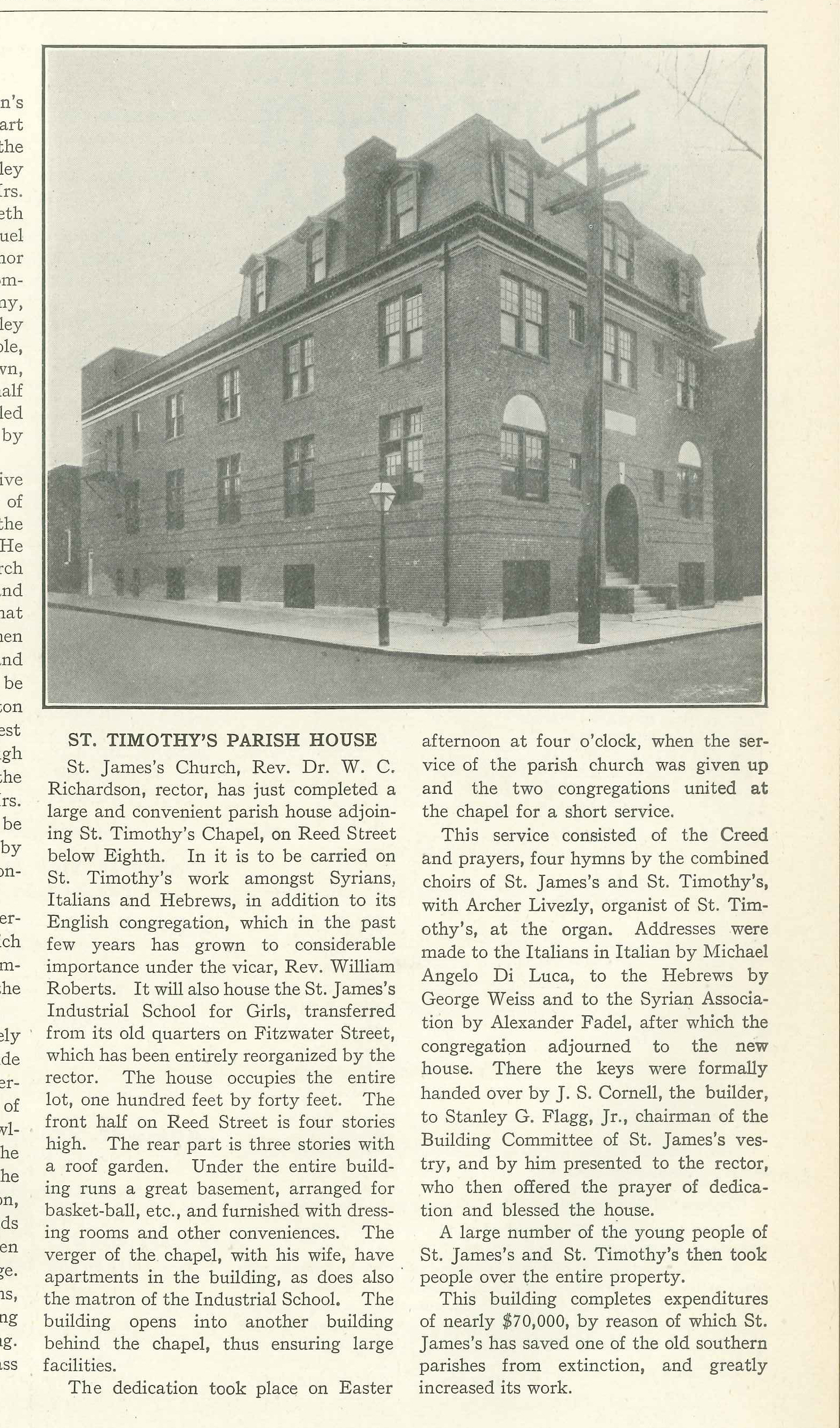 Parish House at St. Timothy’s Chapel, South Philadelphia (1913)