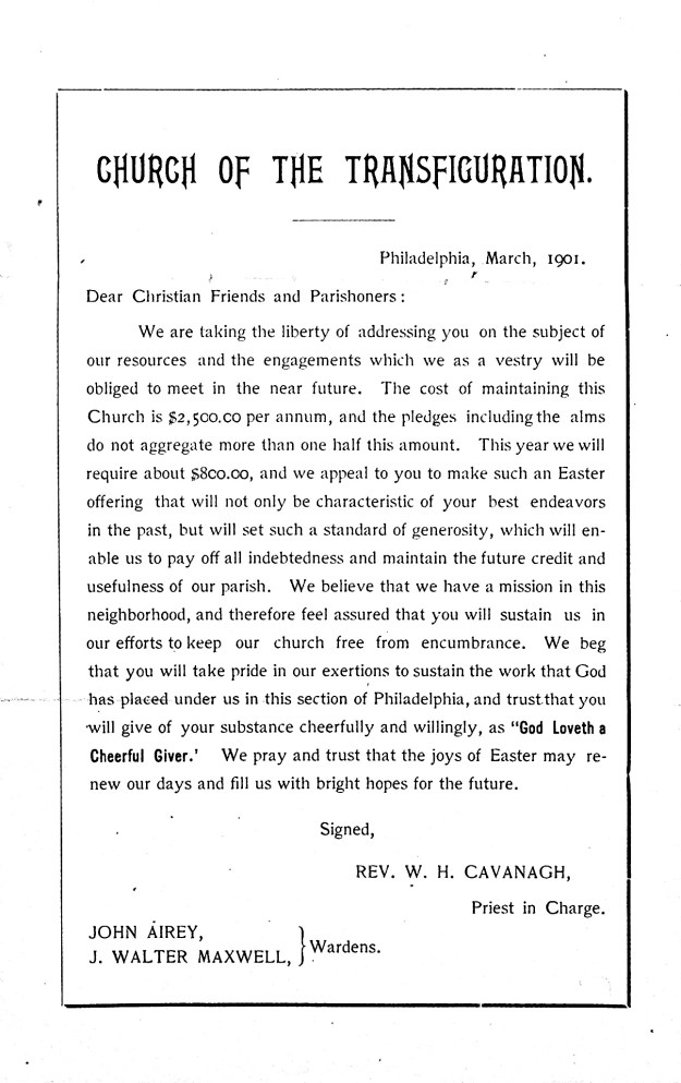 Notice of the Easter Offering at the Church of the Transfiguration, West Philadelphia (1901)