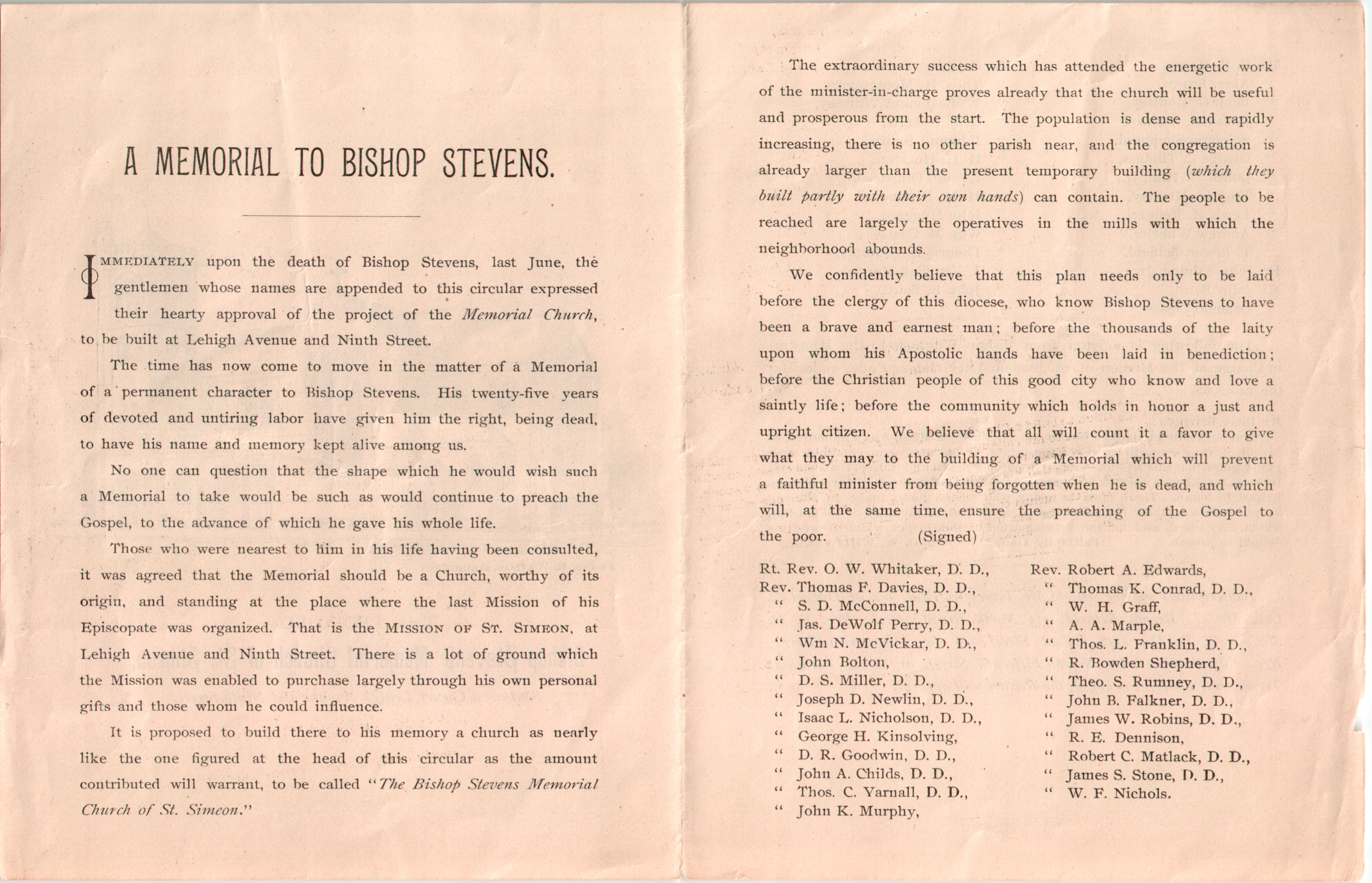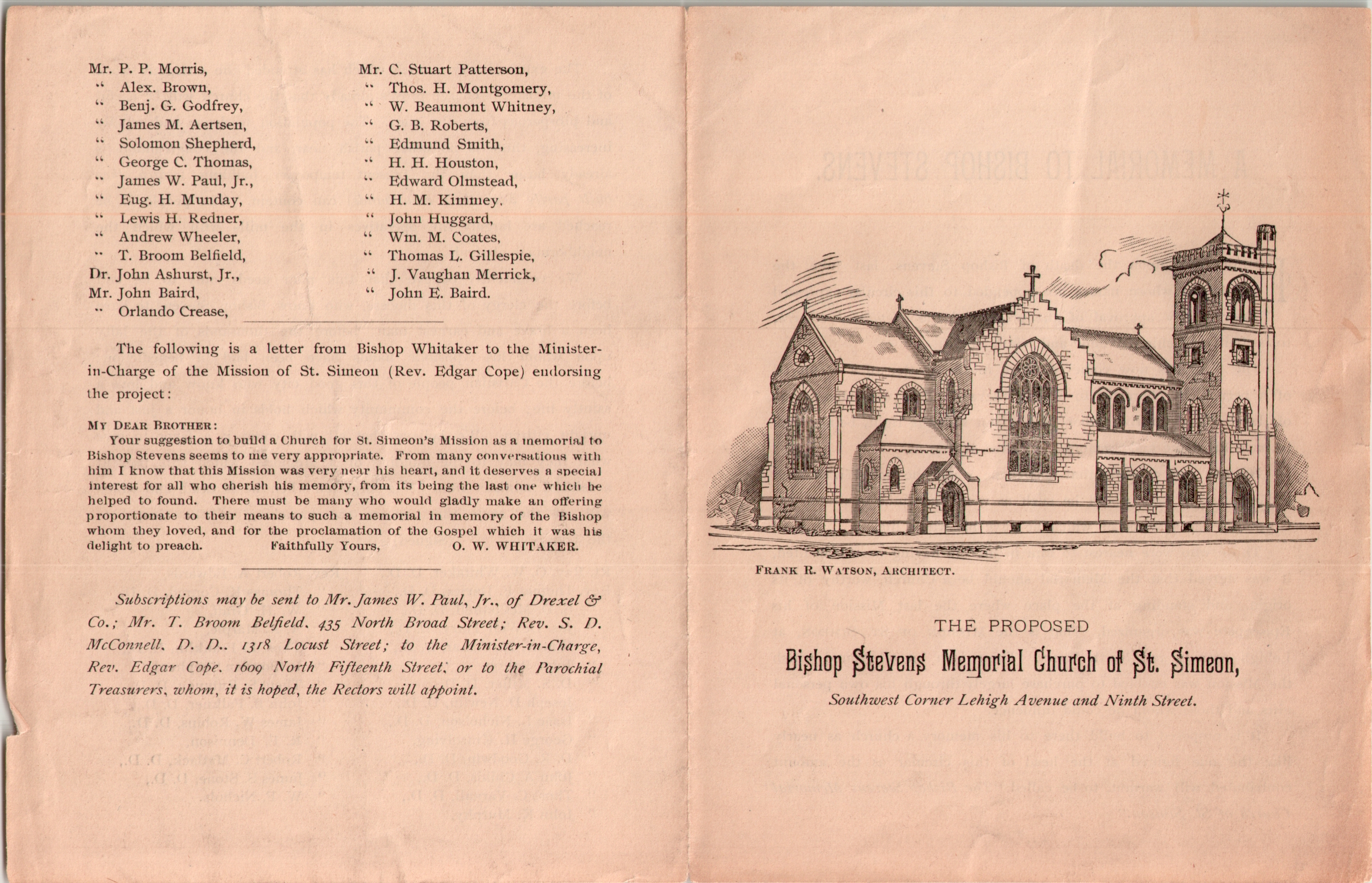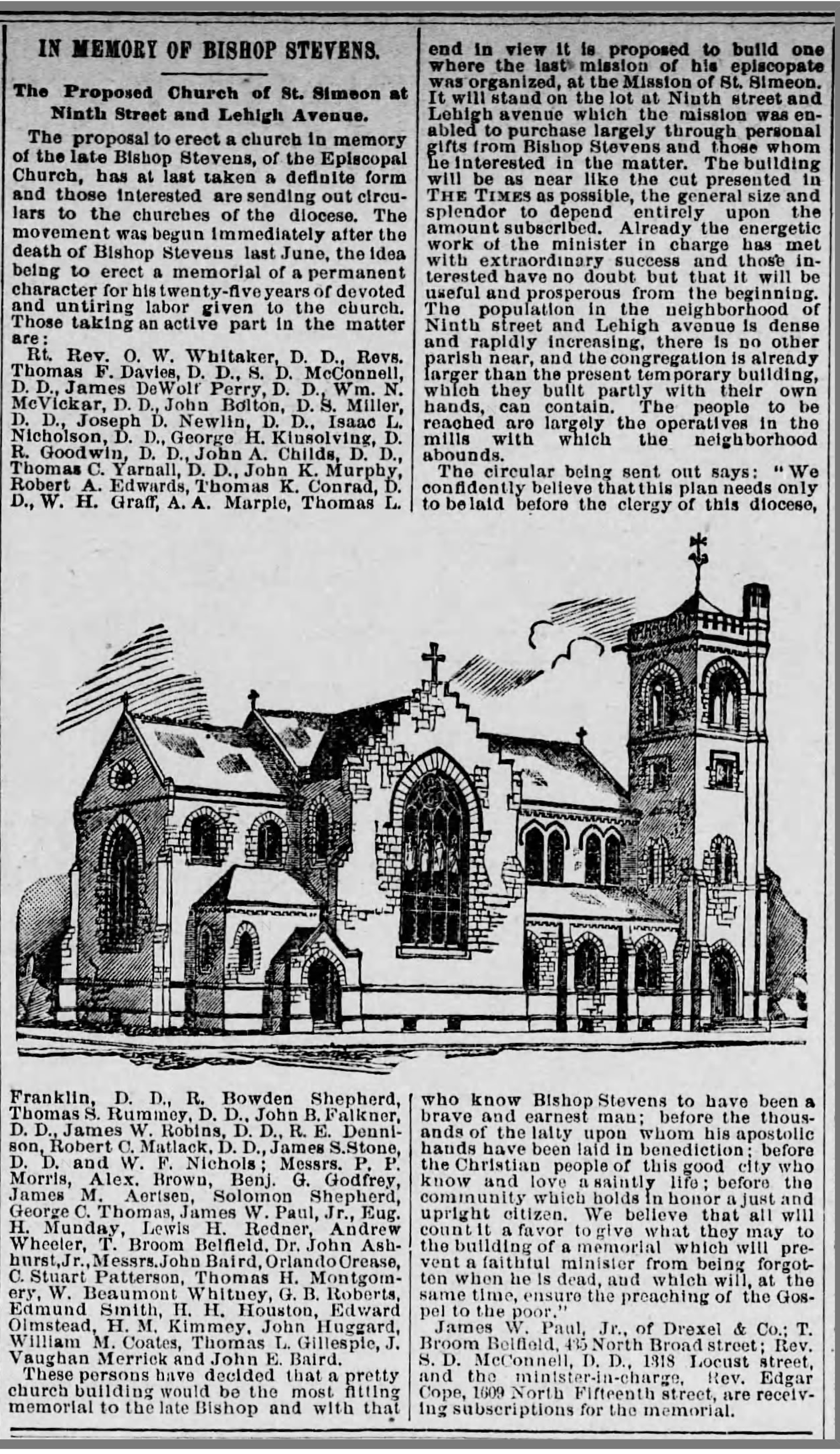 In Memory of Rt. Rev. William Bacon Stevens: The Proposed [Church of St. Simeon] (1887)